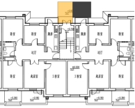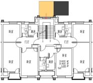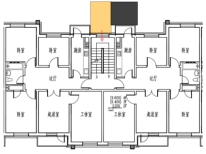 加建电梯后改善型会对其中一户的厨房和卫生间的采光有影响,可以根据场地的情况把电梯厅放在电梯和平台之间,这样对住户都没有影响。