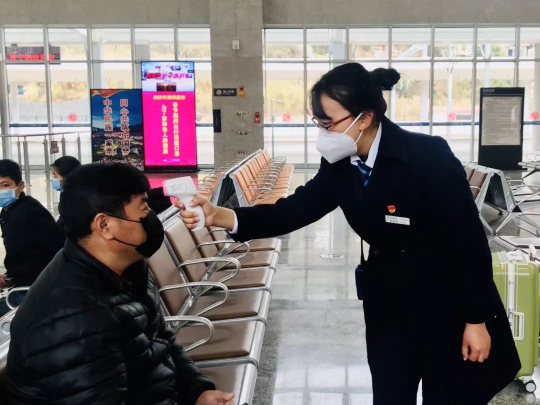 检测体温,做好基本功。测温尖兵身着防护服,做到旅客不漏检,科学防控,依法防治;在进站通道设立咨询台,隔离病毒,拉近人与人之间的爱。