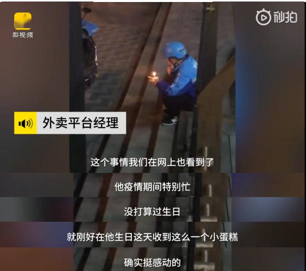 近日一段视频感动了许多人,一位武汉外卖小哥独自蹲在马路边,一边大口吃着蛋糕,一边抹眼泪。小哥在蛋糕店取完外卖后愣住了,立刻返回蛋糕店和店员反复确认,原来外卖的备注上写着:这份小蛋糕是送给外卖小哥的,生活不易,注意身体哦!而当天又正好是他的生日,这份来自陌生人的关心让他泣不成声。