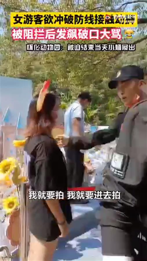 据央视网曝光,2021年十一长假期间,湖南怀化野生动植物园内,一名年轻女子不顾工作人员劝阻,执意要进入红色警戒线内近距离拍摄幼狮,该女子被安保人员合理阻拦后,对安保人员肆意侮辱谩骂,甚至离开前还不忘威胁要曝光对方。据工作人员介绍,这次展出的幼狮刚满月,不能与游客近距离接触,无奈之下提前结束幼狮的展出。