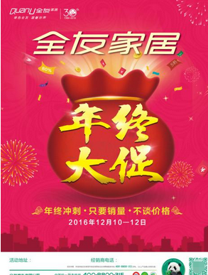 买家具送家具是年终大促的一大亮点,活动期间购买全友家居正价产品,满额还有豪华大礼相送。