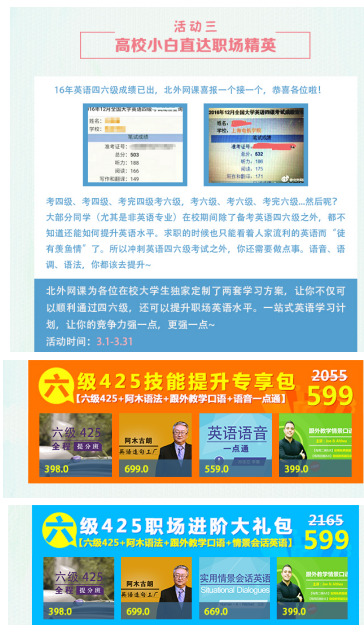 对于高校在校生而言,英语四六级考生的重要性早已不言而喻,而由于复习时间紧张、师资条件有限等原因,无法一次通过考试,也成为很多考生的共同问题。为此,北外网课携英语四六级全明星讲师团队,精心打造《四六级425全程提分班》网络课程,“词汇+四大题型”串联击破,线上线下同步互动,翻译、作文一对一批改,历年考试真题一网打尽,让你充分利用有限时间,提升复习效率,提高复习效果,一次通过英语四六级!另外,值此开学季,北外网课还推出回馈活动,四六级应试与英语技能课打包放送,两大课程方案自由选择。
