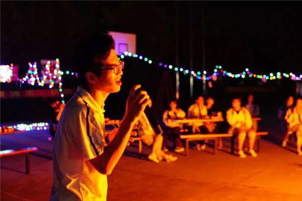 “灼灼明月”——篝火晚会活动。夜幕降临,留校学生和老师共聚中秋之夜,茶话 ,赏月。师生同堂欢庆,动人的歌声洋溢在校园的每一个角落,幸福的笑脸绽放在每个瞬间。