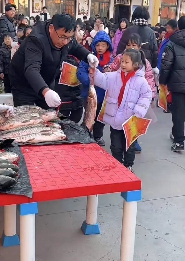 小学期末发五花肉、甘蔗和鱼奖励学生。家长:鱼有四斤重,家里俩孩子都有奖品。