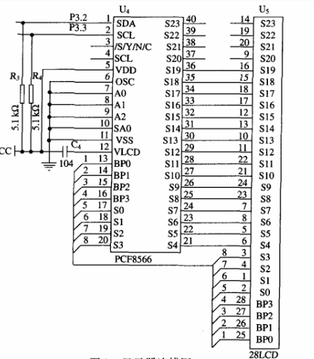 驱动芯片的VOD脚接+5V,OSC、A0、A1、A2、VSS与VCLD都需要进行接地。
