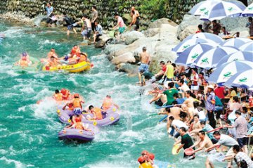 在放水节期间,中外游客们不仅现场观礼盛大的放水仪式,还可以参观世界自然文化双遗产青城山-都江堰,体验景区各大景点的精妙。