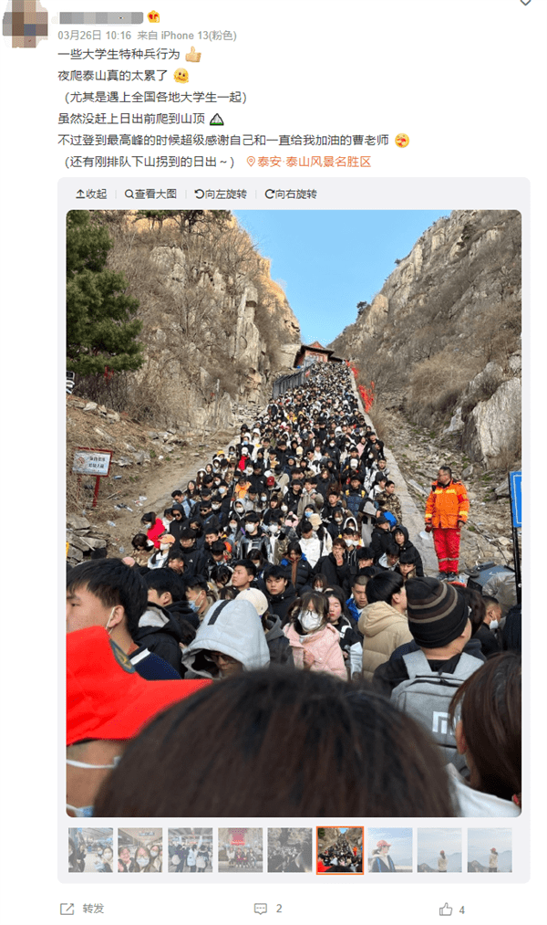 原标题:泰山景区回应山路上垃圾遍地:免票期间人流量大,环卫工来不及打扫