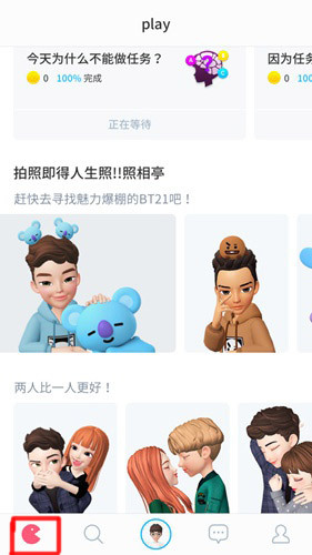 当然,游戏中除了单人拍照之外,还可以与朋友们进行合照,首先我们点击游戏主页面左下角的“吃豆人”按钮。