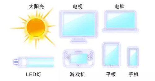 在所有人造光源发出的光中,均含有红、绿、蓝三种颜色的光,其中蓝光的能量较高,尤其是高能蓝光,这些蓝光除了会对视力造成伤害外,对你的皮肤也会造成伤害,引起黑色素沉着、加速皮肤老化等。
