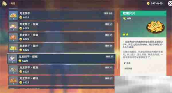 龙龙饼干:前往圣火竞技场传送锚点,寻找小吃摊摊主西帕克购买。这是纳塔主线剧情的限定物品,共6个。