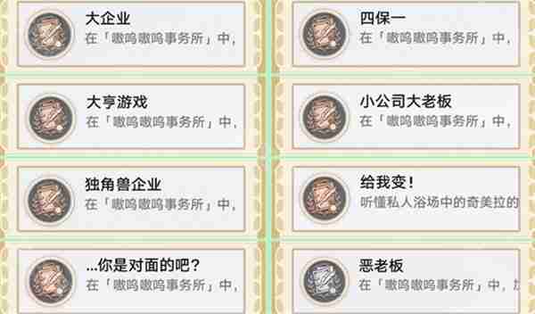 嗷呜嗷呜事务所隐藏成就 (共8个)
