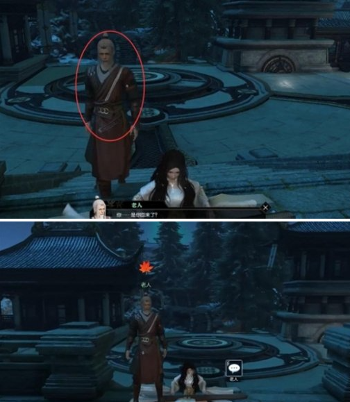 触发奇遇: 使用“弹古琴”动作,触发与神秘老人的对话。