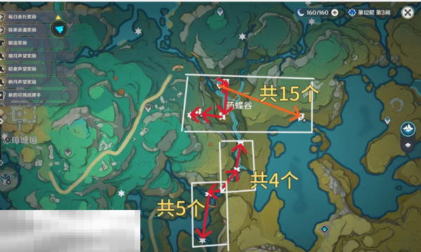 额外获取途径: 地图上标注的“5个”和“6个”路线分别对应NPC购买(1000摩拉/个)和完成龟仙人相关成就(可获得华丽宝箱)。