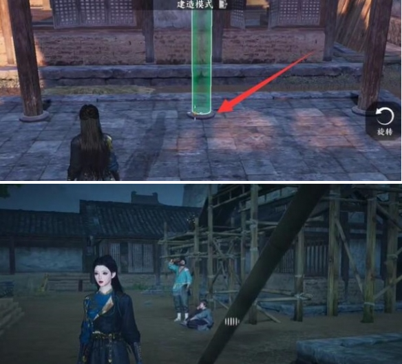 在指定地点搭建四架屋,部件显示绿色时点击放置。