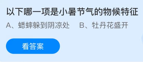 以下哪一项是小暑节气的物候特征?这是2025年蚂蚁庄园7月7日今日庄园小课堂的问题,下面为大家详细介绍2025年7月7日今天蚂蚁庄园课堂小鸡饲料答案。