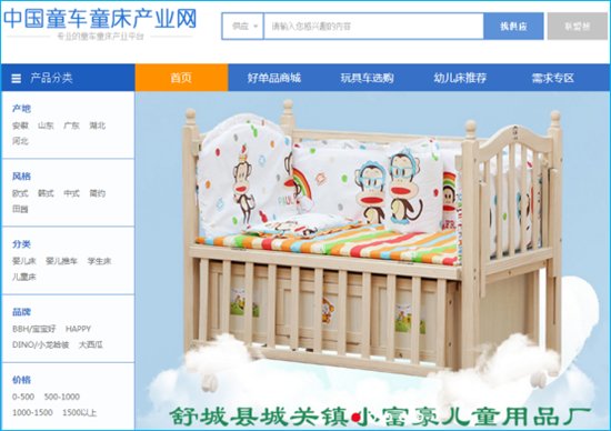 据了解,中国童车童床产业网是专业童车童床B2B交易平台,致力于帮助童车童床企业实现网上批发采购,品牌加盟等。汇聚了众多童车童床知名厂家、经销商、采购商。