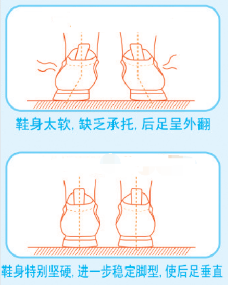 宝宝约2岁至4岁处于稳步期,宝宝足弓被厚厚的脂肪遮盖着,形成假性扁平足,同时有较为明显的后足外翻和X形腿现象,而且这个阶段的宝宝比较好动,双脚长时间承托体重,需要一双具有三维护足设计的稳步鞋来保护双足:1、鞋子的后跟杯进一步加硬,稳定后跟骨;2、温和的足弓承托垫,更好地承托足弓;3、根据宝宝脚形的肥瘦情况,选择合适的前足围度,让宝宝穿起鞋来不挤脚。