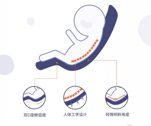 Fox系列儿童推车的座椅革新式的运用了符合人体工学的“仿子宫”设计,仿造胎儿被母体包裹的安全感,提供胎儿到婴儿期的“过渡环境”,让宝宝可以从蜷缩状态,慢慢的张开身体,慢慢的熟悉周围的环境,慢慢的探索世界~Fox科学的座椅弧线设计更是能够贴合宝宝背部,搭配柔软舒适的座椅座垫,让宝宝处于最为协调、舒适的状态,时刻呵护宝宝的健康成长~