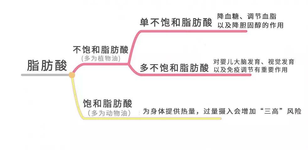 不同的食用油,其营养成分和健康程度与脂肪酸密切相关,而脂肪酸主要是由饱和脂肪酸和不饱和脂肪酸组成的。