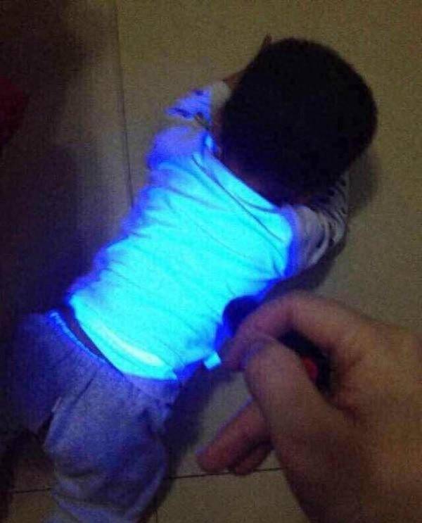 她说听闻荧光增白剂对孩子有害,于是在网上买了盏紫光灯给孩子一照,发现孩子变成了“夜光宝宝”,吓得她赶紧把凡是能让宝宝“变色”的衣服和用品都给扔了,还担心孩子已经用了这么久,会不会有影响?要不要去医院检查一下。