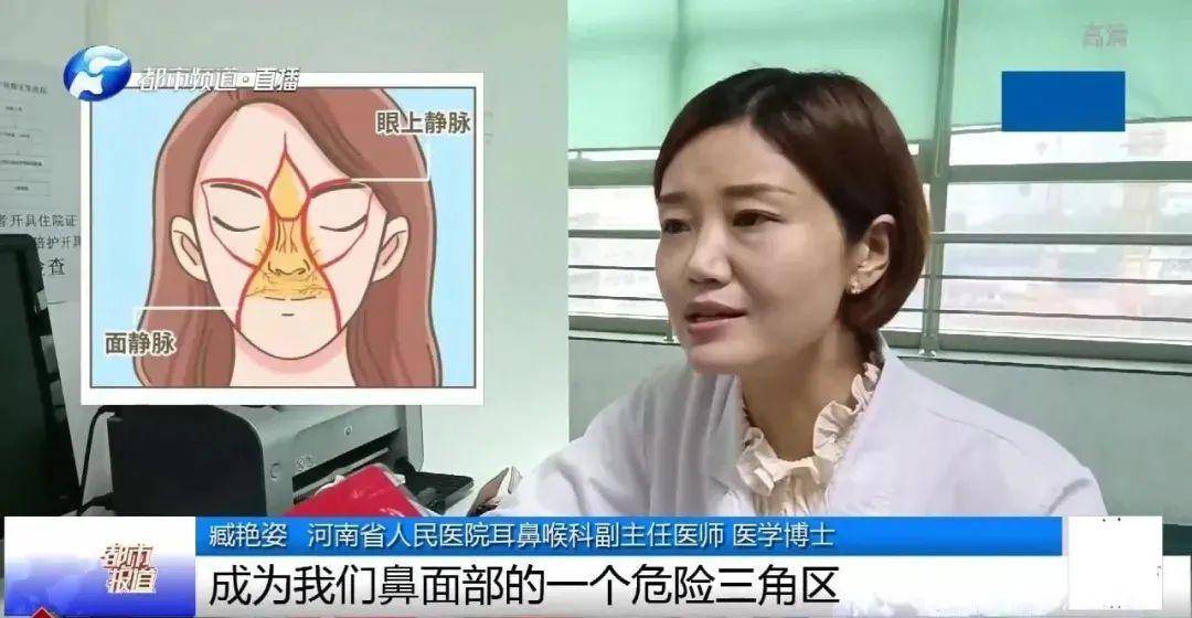 此外,经常挖鼻孔还可能会得鼻窦炎、中耳炎和咽炎。因为鼻子、耳朵和喉咙都是连着的,挖鼻孔会把细菌带到这些地方,而引发疾病。关键是,鼻子位于“面部危险三角区”,这个区域的血管直接连着大脑里的血管。如果这个地方感染了,可能会引起非常严重的颅内感染。