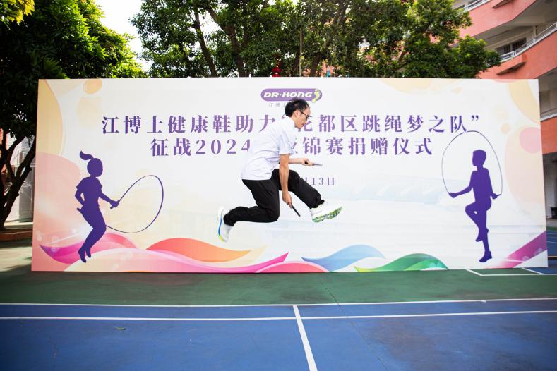 值得一提的是,为全力支持国家青少年儿童运动事业的发展,江博士健康鞋早于7月13日在花东学校隆重举办了捐赠仪式,助力花都跳绳队荣耀征程取得新突破。