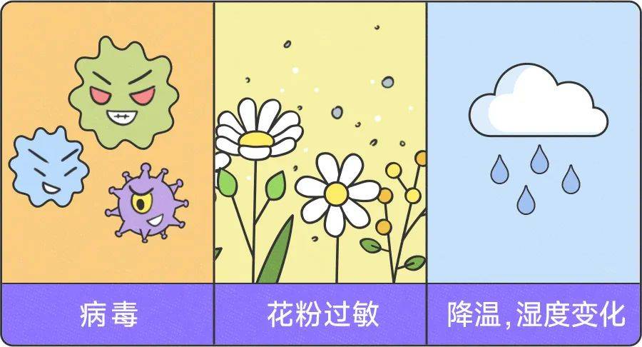 ➋秋季是易过敏季节,花粉刺激气道或者引起过敏性鼻炎而造成的咳嗽也会更常见。