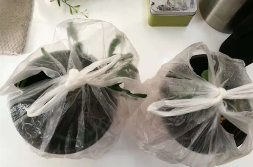 1、找个透明的塑料袋子,袋子的大小依据花盆的大小来选择,用袋子把整个花盆连同植物一起装起来,再系好。从下往上套的袋口不要系死,从上往下套的可以在袋上扎几个小孔或剪几个小口,以便通风。一天当中还是要打开袋子通风1到2小时。