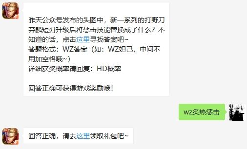 昨天公众号发布的头图中,新一系列的打野刀弃麟短刃升级后将惩击技能替换成了什么?不知道的话,点击这里寻找答案吧——