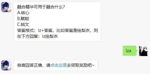 融合精华可用于融合什么 回答正确可以获得天天抽好礼的机会