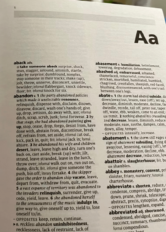 牛津词典又搞事情了,曾经的第一名单词abandon被aback取代了。据报道,牛津平装本同义词库中abandon不再是第一个单词,取而代之的是aback。这个消息立刻引发了网友们的热议和调侃。他们纷纷表示abandon因为被aback抢走了首位宝座,显得闷闷不乐,甚至影响了食欲。