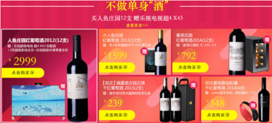 活动期间,网酒网每天随机抽取三单幸运用户免费送出乐2手机。同时,购人鱼庄园12支装总价仅售2999元,赠乐视超4 X43超级电视,小人鱼庄园12支仅售1599元,赠送乐2手机,曼诺庄严红葡萄酒12支仅售792元,赠送豪华酒柜。