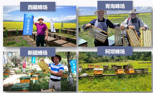 为了将优质的蜂蜜产品带给广大的消费者,健生堂在传统技艺与现代工艺之间不断钻研,在继承优秀的传统古法养殖蜜蜂基础上,结合现代科技,不断实践与改革,完成了对蜂产业上下游优质资源的高效整合,打造了一条从生产端到消费端的绿色通道,构建了以“公司+基地+专合组织+蜂农”为核心的全产业链模式,实现了对优质蜜源、蜂源的把控。