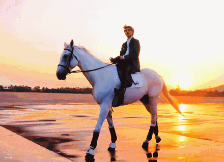 吴世勋骑白马 夕阳下真真是个“白马王子”