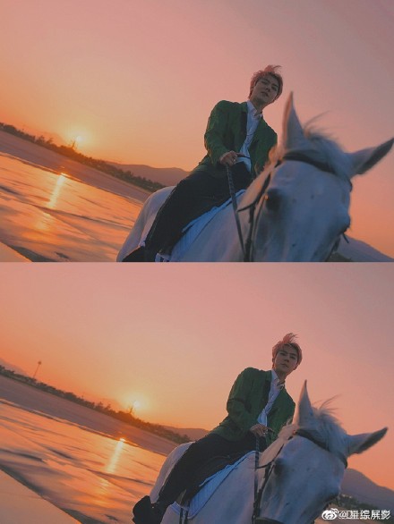 原标题:吴世勋骑白马 夕阳下真真是个“白马王子”