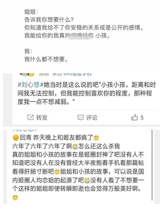 通过网上的种种讯息能看出,在6年前,刘心悠和网传的“小孩”有很深刻的情感纠葛,两人的故事不算大众传播,只是在某个平台被详细地描述了出来,因为故事分外动人,情节真实且感人,所以一时之间引发了很多人的关注和支持,但在当时,这种感情并非主流,还是有大部分人不喜爱的,更何况两人的身份不同,一个人走红的大热明星,一个是默默无闻的素人,为此隔阂很大,刘心悠也不可能公开,所以最终分开了,但刘心悠和“小孩”的对话还是触动了无数人 ,给很多人留下了深刻的印象。