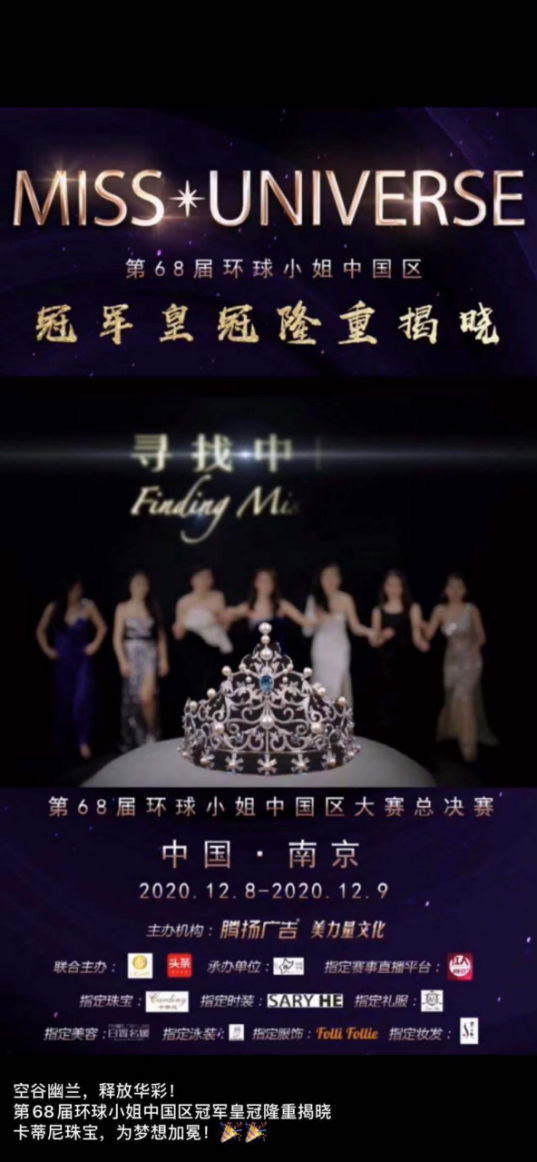 第68届环球小姐中国区大赛总决赛于12月9号下午三点在南京白金汉爵酒店隆重举办。