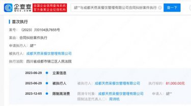 关晓彤父亲持股的天然呆被限消 案由为合同纠纷案件