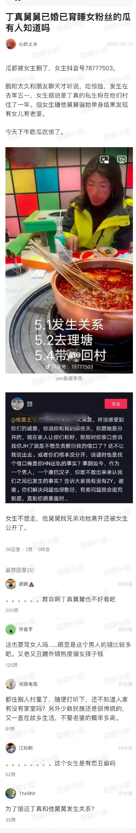 对爆料的女粉丝也是如此,他的爆料相当的毁三观。据悉,这位女粉丝其实是丁真的粉丝,和丁真舅舅发生关系的原因非常毁三观,称做不了丁真夫人,做丁真的舅妈也好。