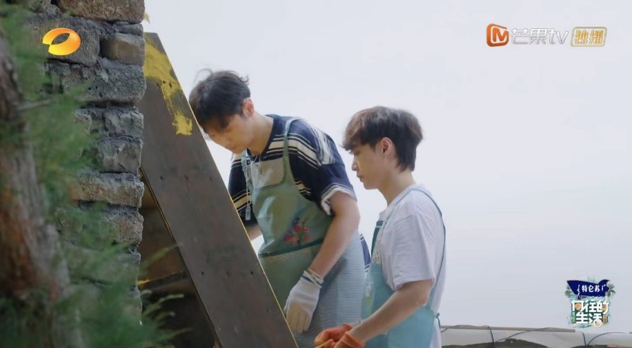 为了给外出务工的妹妹惊喜,大家将妹妹的卧室外墙刷成了粉红色,好哥哥彭彭更是将窗户刷成了“666”的形状;后来“不容易组合”还将厨房梯子刷成黄色,有强迫症的李荣浩和不拘小节的张艺兴配合起来简直是一对活宝的“天作之合”!