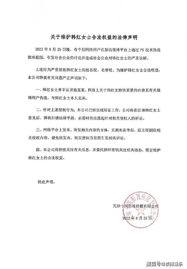 声明里提到,8月25日晚,有个别网络用户在某平台通过ps技术伪造了截图,引发公众讨论,并造成社会对韩红的严重误解。
