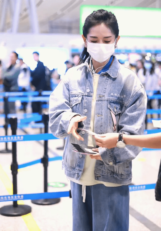 画面中,谢娜戴着白色口罩,一身休闲浅蓝色牛仔穿搭,左手拿着东西,右手向粉丝挥手,显然眼角已经湿润。