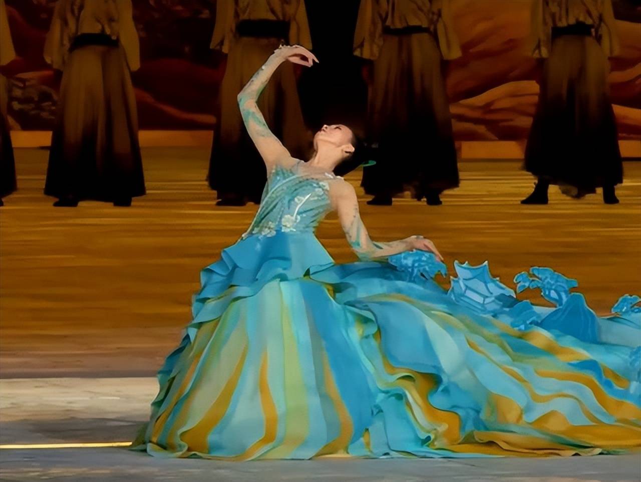 《水墨入诗画》以传统的水墨画为灵感,将水墨画元素巧妙地融入舞蹈表演中,展现出中国传统文化的韵味与魅力。舞台布置简洁大气,以宋韵青绿山水为背景,舞蹈演员李倩穿着裙子在翩翩起舞,使观众仿佛置身于一幅幅艺术画卷之中。那么,你可知那条5米多长裙摆的裙子,竟然重达100多斤。
