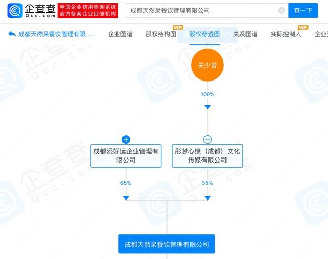 12月7日,企查查APP显示,近日,成都天然呆餐饮管理有限公司因未履行法律文书确定的给付义务,被限制高消费,案由为合同纠纷案件执行,此前该公司已被强制执行8.1万元。据悉,天然呆奶茶品牌是天然呆餐饮公司携手关晓彤共同创立。企查查股权穿透显示,该公司由关晓彤父亲关少曾间接持股35%。