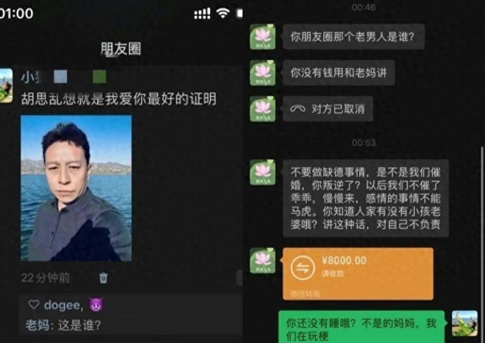 还有人在抖音发图称,用该大叔的自拍发朋友圈后,其母亲担忧其因没钱用找了个老男人当男友,立刻转账了8000元。