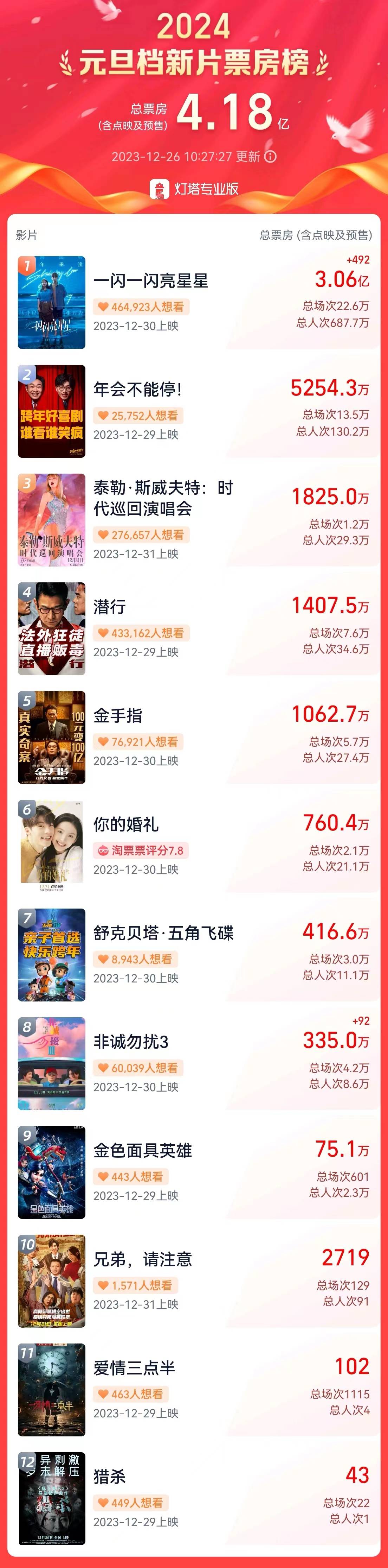 12月30日,由张佳宁屈楚萧主演的电影《一闪一闪亮星星》上映。