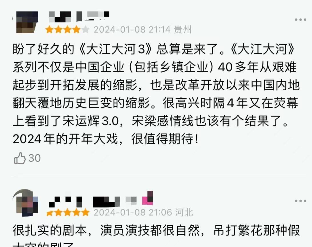 从观众的反馈来看,《大江大河3》的首播也获得了一致好评。在很多人看来,该剧打破了续集魔咒。剧情和人物一致,剧本扎实踏实,演员们演技在线。三年的等待是值得的,值得成为央视贺岁剧。