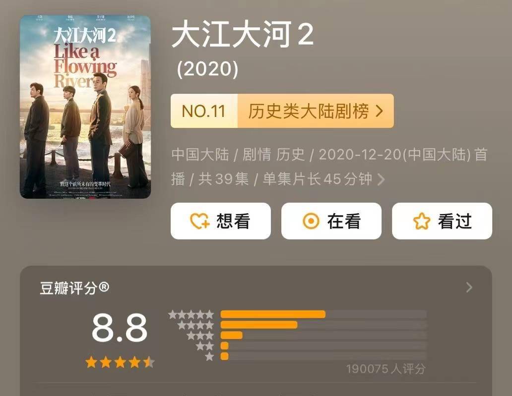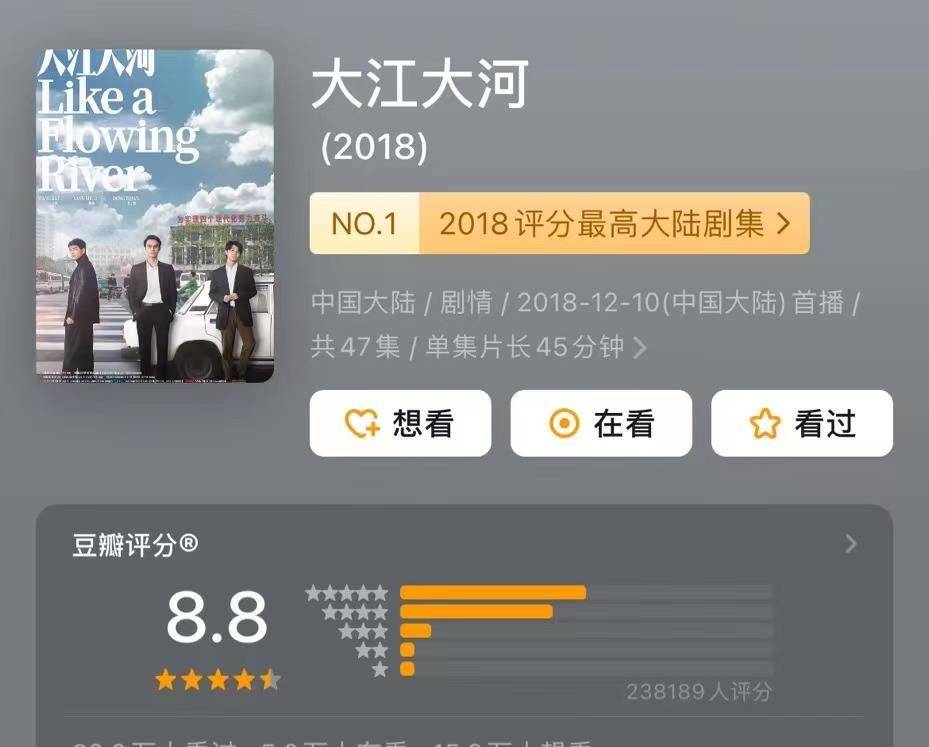 《大江大河》剧集于2018年开播,前两集评分高达8.8分,成为国产剧中最好看的一部。该剧之所以受到好评,是因为它的剧情内容是它的法宝。