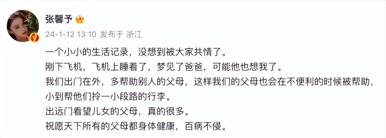 对此,张馨予发文回应:一个小小的生活记录,没想到被大家共情了。