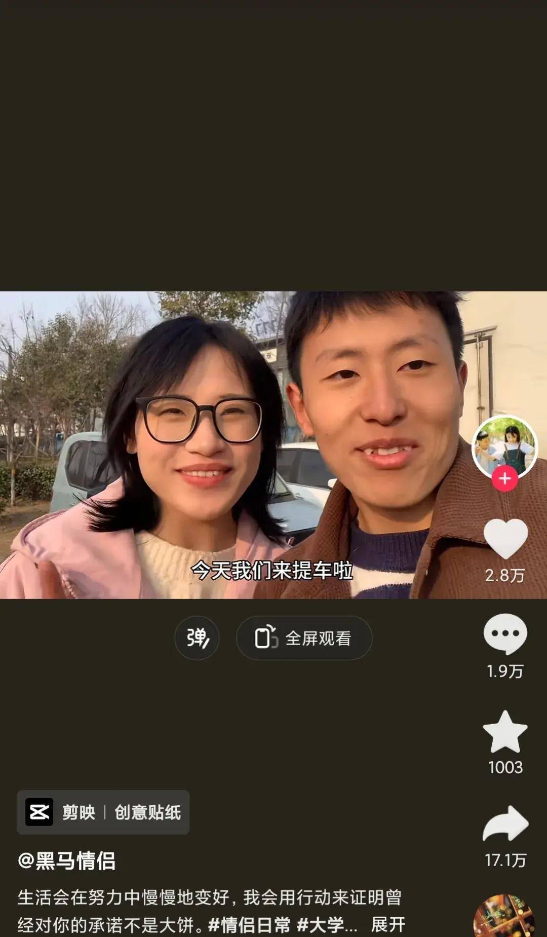 谁能想到那对抠抠搜搜不太正常的“黑马情侣”竟然也提车了。